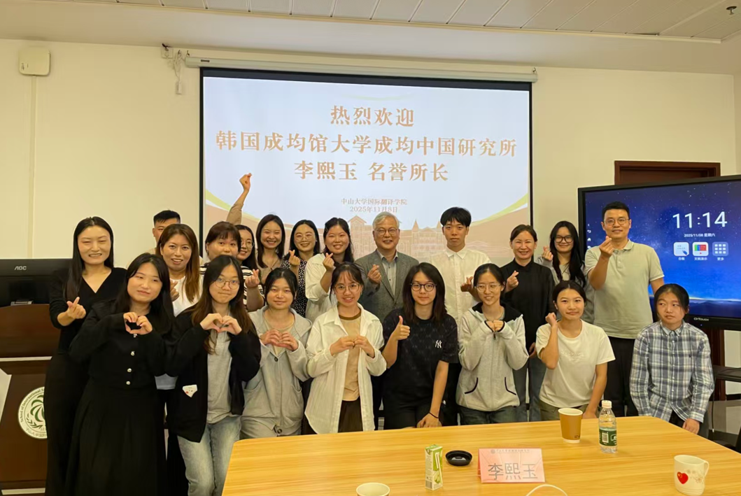 2025年11月8日,韩国著名的“中国通”、成均馆大学成均中国研究所名誉所长李熙玉教授应邀在中山大学区域国别研究院开展了一场名师讲座,主题为《面向未来的中韩人文交流新探索》。本次活动由区域国别研究院中韩人文交流研究中心与国际翻译学院东亚研究中心共同主办,朝鲜语系主任赵甜甜副教授和中韩人文交流研究中心主任陈晨副教授一同主持。来自国际翻译学院、历史学系(珠海)和国际关系学院的二十余位师生参加了此次讲座。