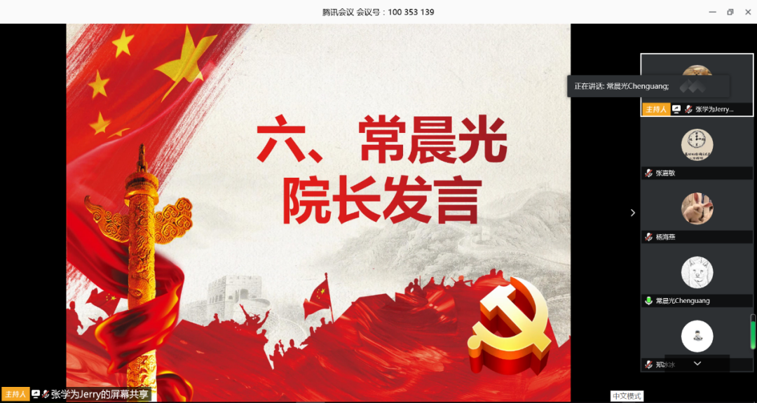 常晨光院长表示,本次党日活动准备充分,展现了本支部良好的精神风貌和支部成员关心国家时政的家国情怀。他指出,疫情期间,总书记亲自指挥,党中央科学部署,医护人员、基层干部等劳动者坚守岗位、无私奉献,全国人民共同努力才能取得疫情防控的向好形势;同时,疫情防控给国家的经济发展带来一定的影响,我们一定要相信党,相信政府,要有拥抱新生活的信心。